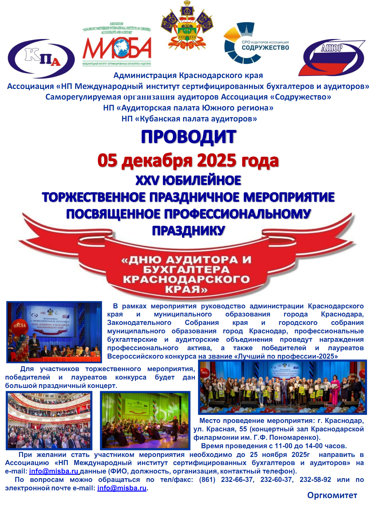 В соответствии с постановлением Законодательного Собрания Краснодарского края от 05.12.2001 г. № 1256-П ежегодно отмечается День аудитора и бухгалтера Краснодарского края (в первое воскресенье декабря).